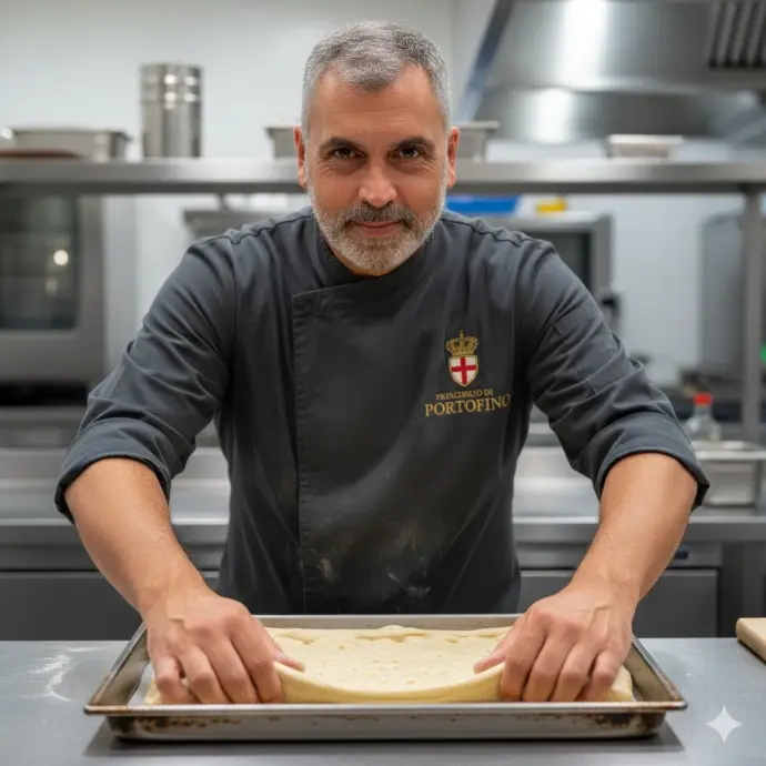 La Focaccia del Principato di Portofino è un vero e proprio simbolo di eleganza e raffinatezza. Realizzata con sfoglie di pasta sottilissime, stese a mano con cura e dedizione, questa specialità racchiude al suo interno un cremoso stracchino, un formaggio fresco dal sapore delicato e avvolgente. La sua croccantezza, simile a quella di una cialda, si sposa perfettamente con la morbidezza del ripieno, creando un'esperienza sensoriale unica.